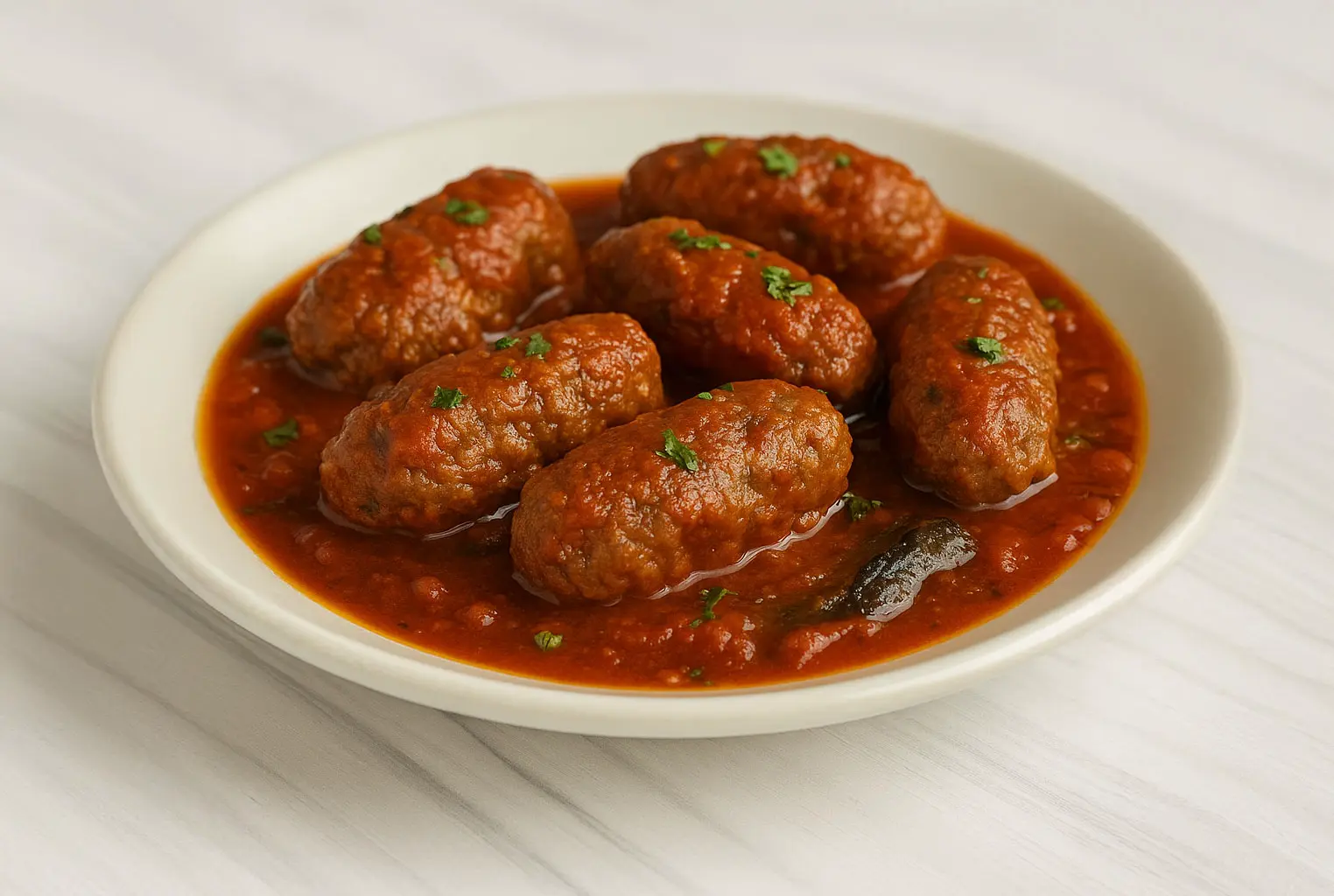 Traditional Greek spiced meatballs in a rich tomato sauce